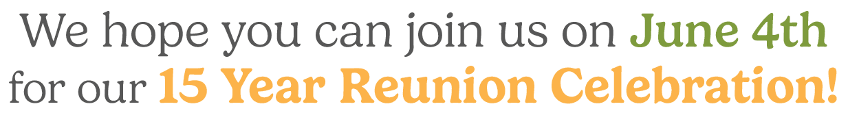 Join us on Thursday, June 4th from 3-6PM at Tree Street (144 Howe St. in Lewiston) for our 15 Year Anniversary Reunion Celebration!